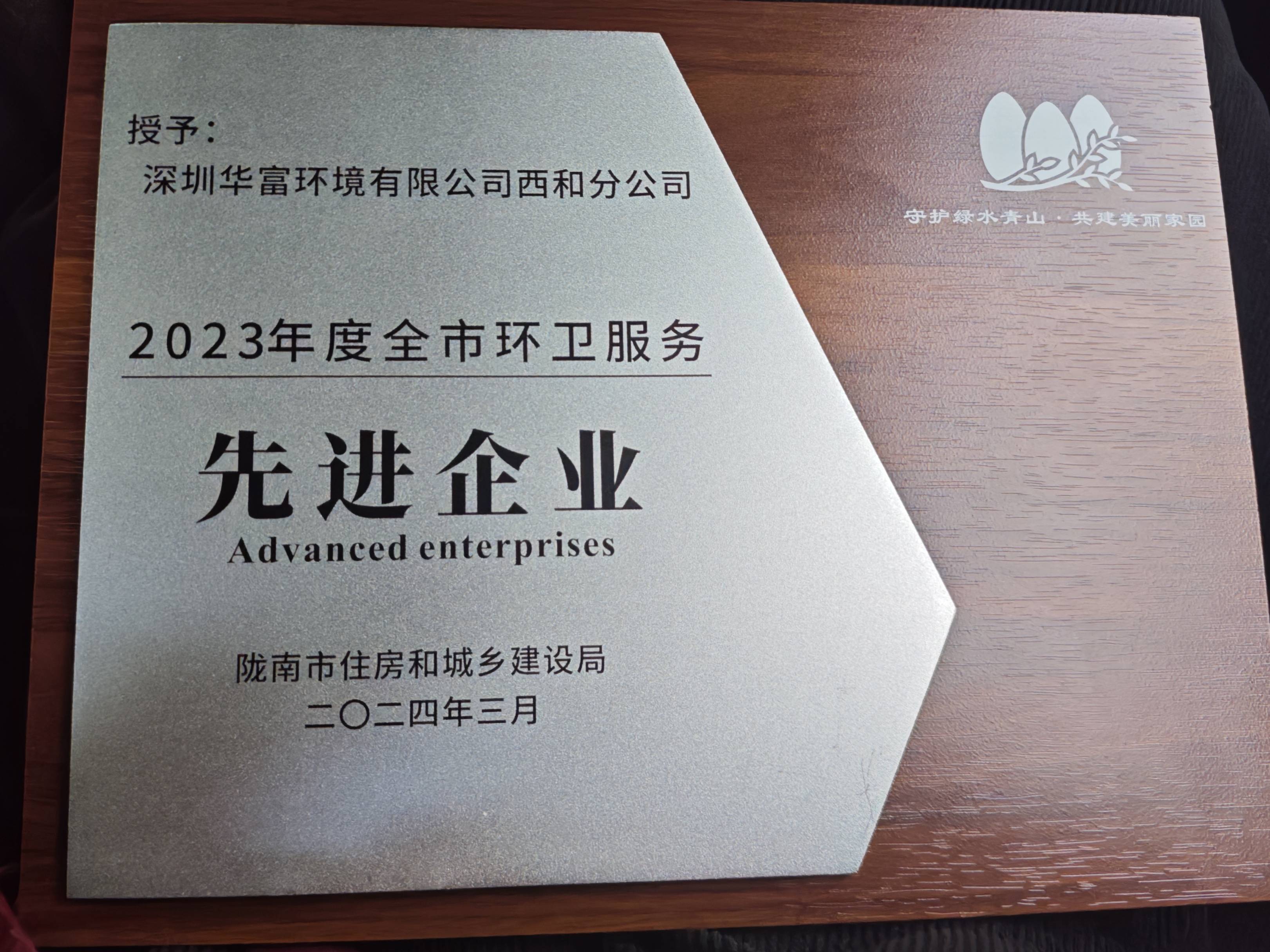 K8凯发环境西和项目荣获“2023年度陇南市环卫服务先进企业”,员工刘欢喜获得“2023年度最美环卫工人”称号。